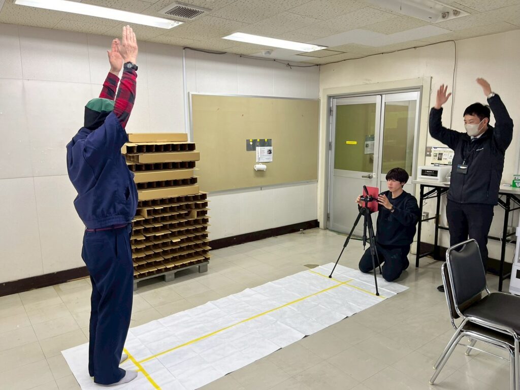 その後、結果を踏まえ、職場や日常生活の中で無理なく実施できる簡易的な運動を体験形式で行いました。